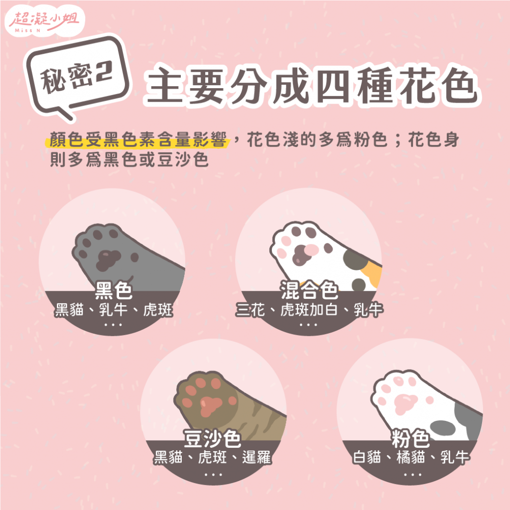 2. 貓咪肉球顏色主要分成四種