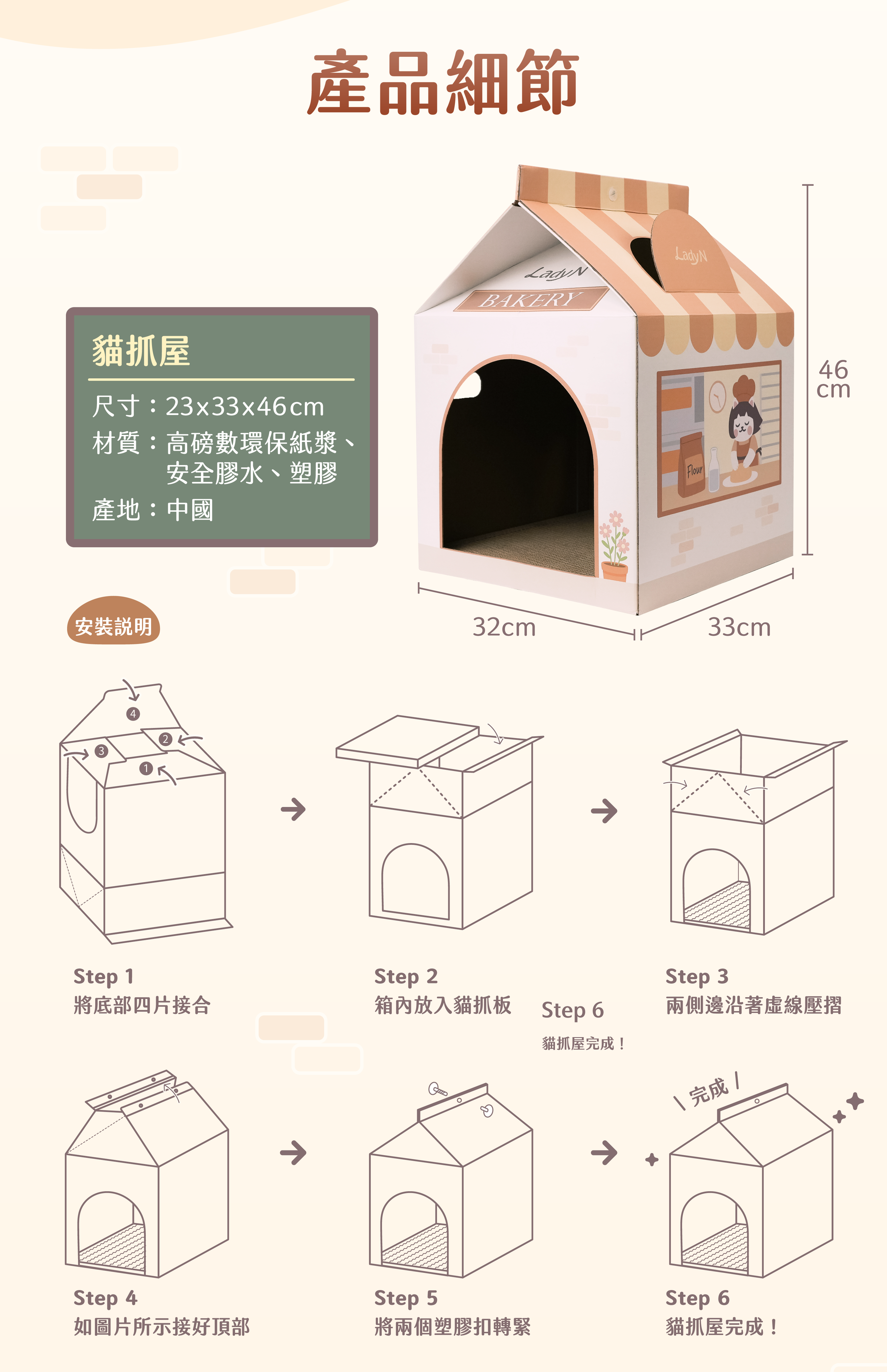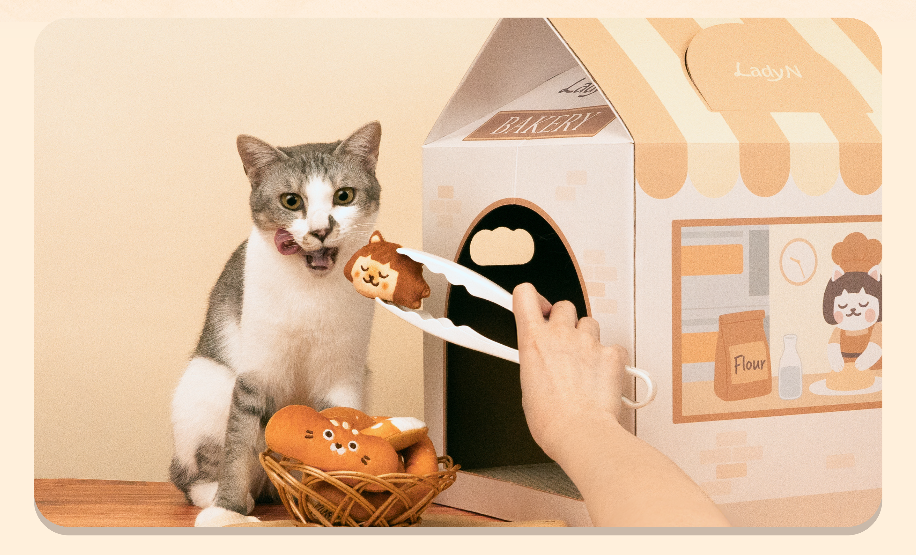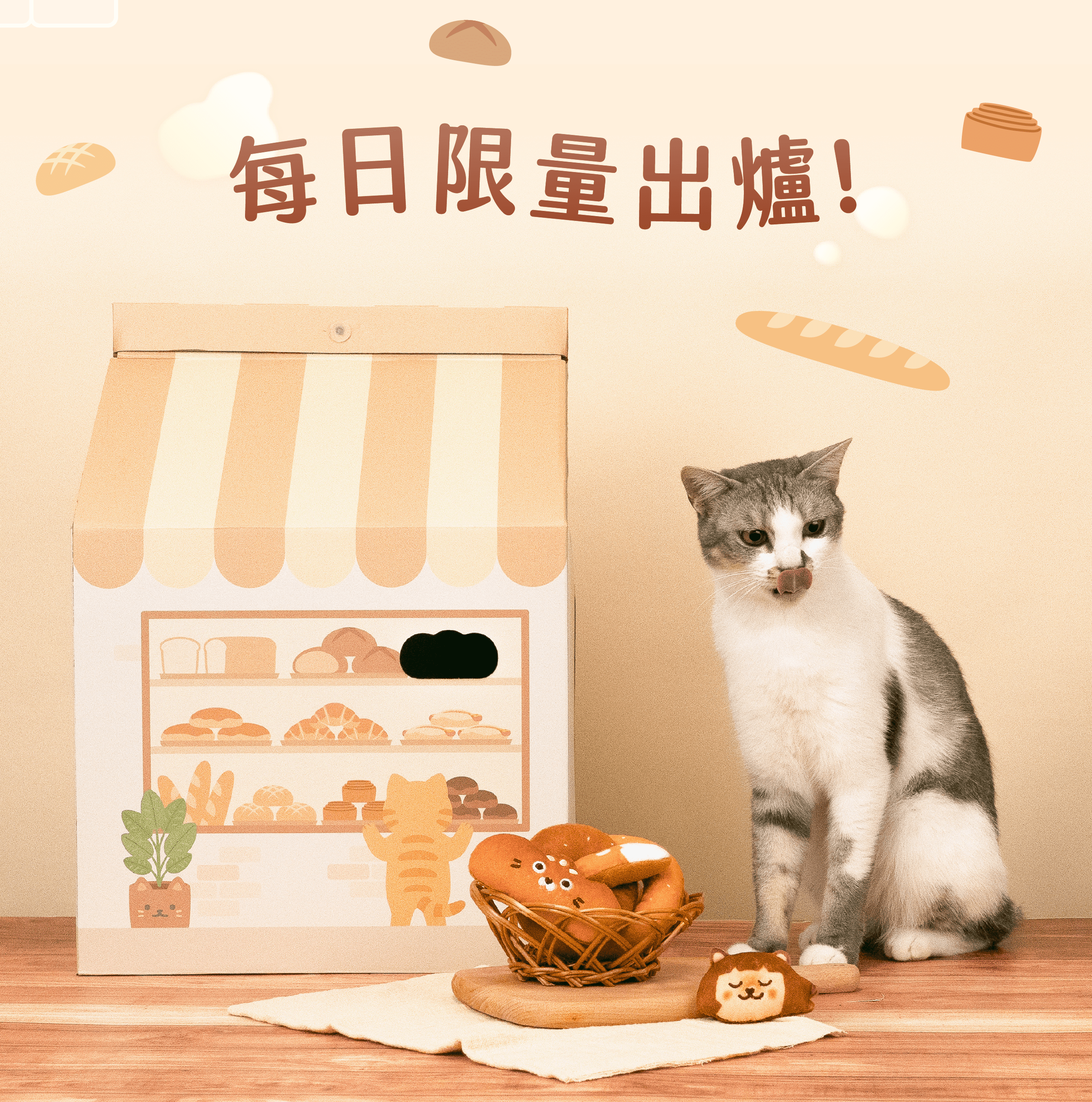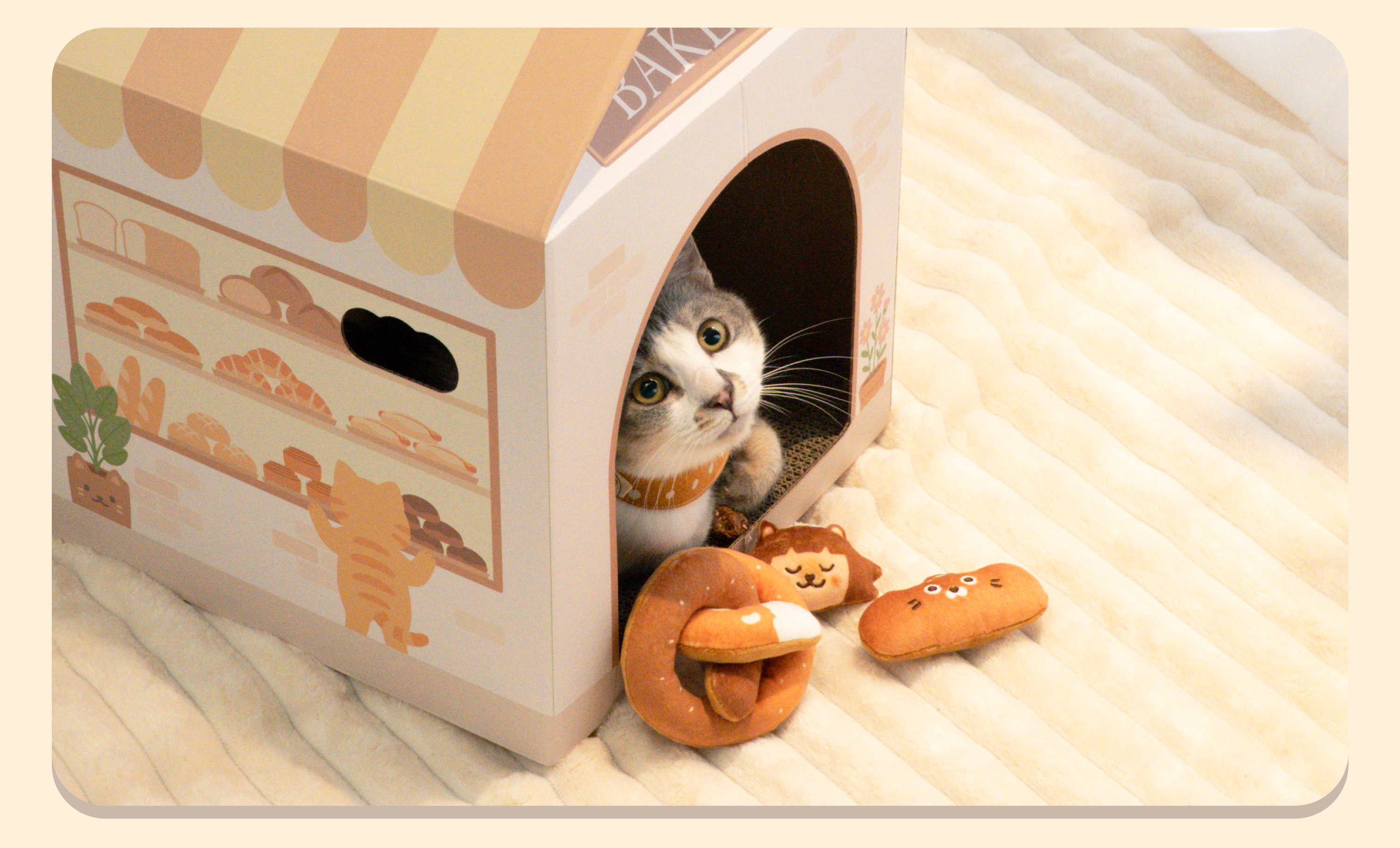 ▸ 麵包店貓抓屋🏠 幫貓咪開一間專屬的麵包店! 耐抓抓板+躲藏空間,貓咪的最愛 買麵包店就送吐司頭套
