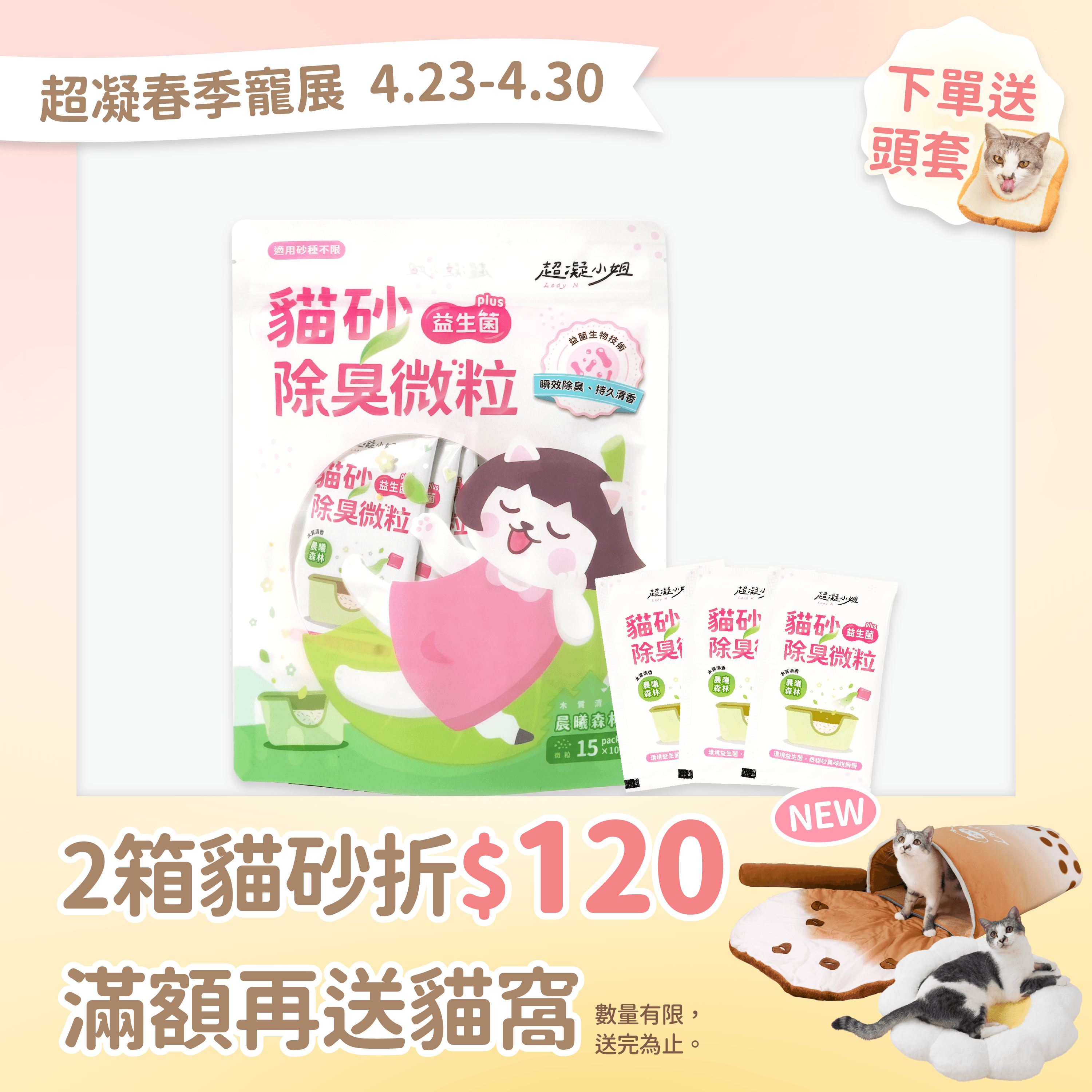 品名:超凝小姐 貓砂益生菌除臭微粒—晨曦森林