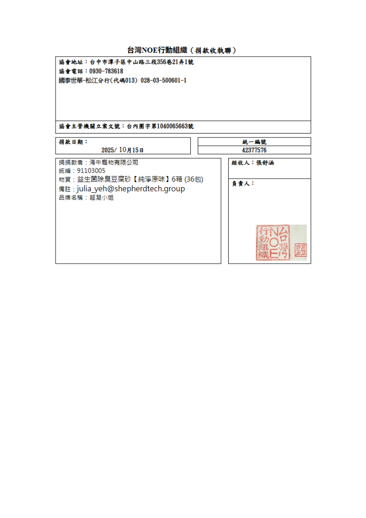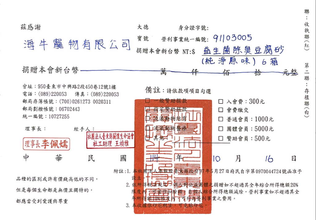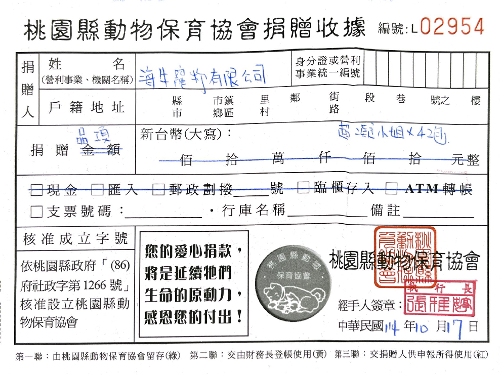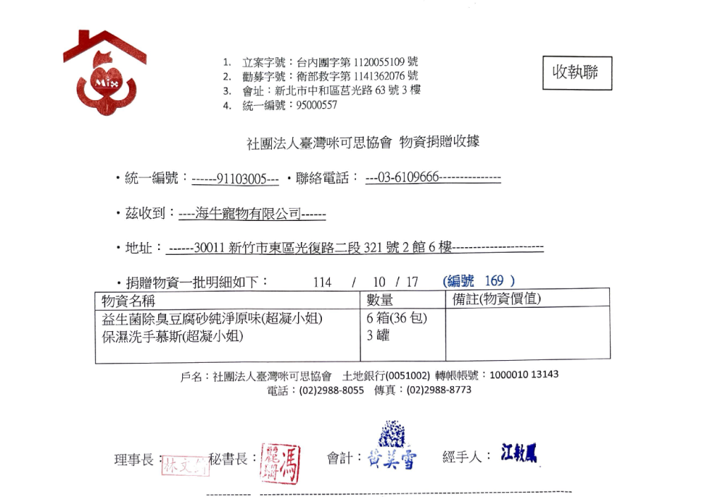 【10月份】捐贈證明